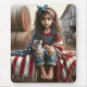 Mousepad Rapariga Com Bandeira Americana E Kitten