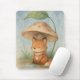 Uma ilustração aquosa de uma pequena raposa que se abriga sob um cogumelo gigante durante uma chuva suave. Com tons suaves e terríveis e uma atmosfera sonhadora, esta peça captura a magia silenciosa de um dia chuvoso na floresta.