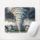 Um grande tornado feito de dinheiro girando domina um bairro suburbano, criando uma cena surreal e caótica.