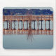 Foto de uma ponte de madeira sobre um corpo de água, com árvores mortos refletindo na superfície da água calma. As ramificações e pernas do passeio criam arcos e formas na água. No horizonte ao fundo está um trecho de terra coberto de árvores. Fotografia Copyright ©2018 Kimberly J Tilley.