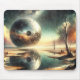 Essa esfera metálica surrealista e intacta reflete uma paisagem apocalíptica do deserto do barão, com mortos, fogo e fumaça.