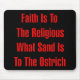 Procurando um rápido e uma forma facil explicar sua objeção à religião? As letras grandes, vermelhas proclamam que a "fé é ao religioso que areia é à avestruz." A boa maneira de deixar outro conhecê-lo não precisa nenhuns amigos imaginários que dizem lhe o que pensar.