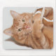 O gato-do-mato-laranja ou gengibre brinca com o fio