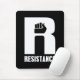 Este trabalho de arte apresenta a palavra resistência e um punho elevado.