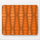 Este mouse pad tem um design moderno do século médio de retângulos arredondados em dois tons de laranja correndo verticalmente em um campo de marrom.