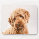 Um retrato de estúdio de um cão de rabisco ouro olhando para a câmera.