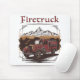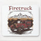 Discover our retro design of a fire truck in front of an impressive mountain range, perfect for all firefighters.