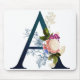 As flores bonitas e ricos incluem folhas de ouro, rosa púrpura e flores silvestres azuis em letras grandes / iniciais A.