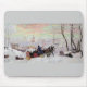 Imagem de inverno de arte em Vintage de pessoas em um passeio de trenó. Pintura russa mostrando a vila à distância. Trabalho de arte de Boris Kustodiev.