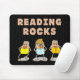 Ler texto rochoso com três rochas felizes segurando e lendo livros é um design de presente de alfabetização engraçado para amantes de livros, bibliotecários, professores de alfabetização escolar e estudantes.