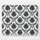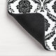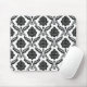 A vintage style decorative damask surface pattern influenced by rococo classical design in black detail on a white background.