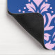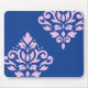 Role e folha damask repita design em detalhes cor-de-rosa em um fundo azul.