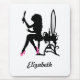Personalize adicionando seu nome a este mousepad chique e à moda com uma silhueta de uma mulher da forma, vestindo calçados curados elevação do rosa quente com os arcos bonitos, sentando-se em uma vaidade da composição e admirando sua reflexão feminino do fashionista em um espelho.