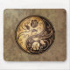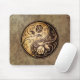 Estas características de design ásperas e ásperas de yang do yin dois rosas tribais estilizados. Os redemoinhos intrincados decoram ambos os lados deste símbolo tradicional que criam um teste padrão delicado. As duas flores fluem da parte inferior da lágrima de cada lado com as folhas que crescem das hastes. As texturas ásperas e as cores marrons naturais dão ao design o olhar de ser um produto manufacturado antigo. Este yin original yang faz um design impressionante e à moda do mousepad.