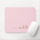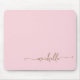 Mouse pad personalizado com monograma dourado e nome em rosa claro, simples e minimalista, com letra em estilo de caligrafia personalizada. Estes desenhos apresentam seu primeiro nome em uma linda tipografia de letra manuscrita com cauda ornamentada em cor dourada sobre um fundo rosa bebê claro ou rosa avermelhado. Fácil de personalizar. Presente feminino elegante para aniversário, dia das mães, chá de noiva, aniversário de 16 anos e é para a garota que ama coisas únicas e minimalistas.