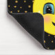 Rostos felizes e estrelas ouros bonitos no Mouse Pad de fundo preto. O texto feliz pode ser personalizado.