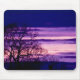 Mousepad roxo da silhueta da árvore do por do sol
