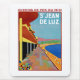 Poster de viagens colorido do Santo Jean de Luz, França. Na costa atlântica da França, o Santo Jean de Luz foi um famoso resort de praia no final do século XIX e início do século XX, como se fosse o vizinho mais famoso, Biarritz.