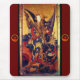 Descrição única e fantástica das Ruas. Michael Archangel como cavaleiro medieval. Tempera e ouro no painel. Gonzalo Pérez, início do século 15. Um design elegante e clássico com um velho pergaminho e rubis vermelhos.