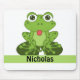 Este design apresenta um sapo giro sentado em uma almofada de lírio. O TEXT pode ser personalizado com seu nome ou dizendo. Arte original de Angie Wenke