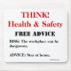 Mousepad Saúde e Segurança! Trabalhando a partir do Home Fu