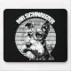Retrato preto-e-branco de um mini schnauzer com óculos num fundo de pôr do sol no estilo de safra. O presente perfeito para amantes schnauzer.