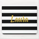 Personalize o script dourado faux (não folha) com o nome ou outro texto desejado no centro. As listras brancas e pretas estão no fundo.