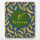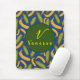 Lindo MousePad do Script Monograma de Banana Azul Folha Tropical é um design moderno com vibrações havaianas com abundância de folhas verdes e bananas. Compre uma hoje!