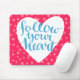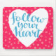 As citações da rotulação da escova seguem seu coração no fundo cor-de-rosa da aguarela. Design de cartão cor-de-rosa do vetor com tipografia moderna. | Bigstock® - todos os direitos reservados.