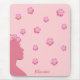 Silhueta de mulheres rosa, flores cor-de-rosa e caligrafia em fundo de rosa claro.
