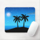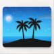 Mouse Pad em uma silhueta negra de uma ilha tropical, sob um céu azul profundo, com lua e estrelas