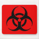 Símbolo de risco biológico preto em uma cor vermelha neon.