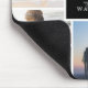 Photo mousepad where you can add eight of your own photos in a minimalist collage. At the center, against a black background, add your family name and initial.