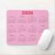 Simple and modern 2026 calendar mouse pad featuring bold red and black accents on a clean pink background. Customize easily by selecting your preferred background color before checkout.