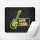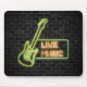 Sinal de neon de música ao vivo com guitarra na parede de tijolos urbanos