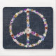 Sinal de paz retroativo em fundo texturizado jean denim azul.