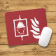 Ícone de chamas e elevador de bombeiros em fundo vermelho.
