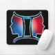 O símbolo da estrela gemini zodiac foi misturado com dois perfis de meninas gêmeas olhando em direção diferente. Mouse Pad para Gemini.