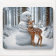 Uma cena balbuciana em uma floresta coberta de neve mostra um bonzinho bonzinho com nariz de cenoura e uma proa nuzindo contra ela.