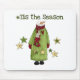 Um velho país parece um boneco de neve vestindo um vestido verde e vermelho, pantufas matinais de coelho, e um cachecol, estrelas verdes e douradas, e texto que diz "Esta é a temporada" sobre o tema do boneco de neve T-shirts, cartas, canecas, ímanes, sacos de tote, e muito mais.