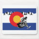 Um Legal movente de neve na bandeira do Colorado com montanhas