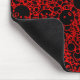 Um design composto de bolhas geradas aleatoriamente em vermelho sobre preto