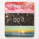 Sonhe, faça, viva design. Nuvens cor-de-rosa, cidade ocupada à noite, e praia ao pôr do sol.
