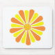 A pintura de pétalas amarelas e laranja brilhantes, provenientes de círculos de amarelo e laranja, é impressa em mousepads. Parece uma flor e/ou uma explosão de energia.