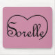 The Italian word for sisters is Sorelle. Done in black script and tucked inside of the top of a heart.