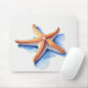 An illustration of an orange starfish on its blue silhouette. Watercolor drawing.
