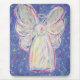 A arte mostra um anjo pastel macio contra um fundo noturno estrelado de pasta azul. A imagem foi inicialmente pintada com acrílico e depois terminada em pastel para criar a cor luminosa suave.