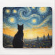 Mousepad Starry Night Overlook Black Cat & Twinkling Town
