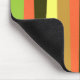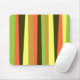 Um design irregular vertical listrado em verde, laranja, amarelo pálido, ocre de ouro e número bruto, cada um com um papel sutil como efeito de textura.