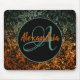 Mousepad Stylish Orange and Green Black Floral Monogram